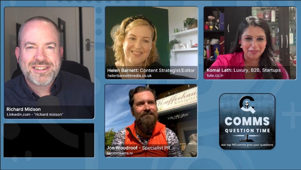 • Comms Question Time invites on panelists who do things differently and who genuinely want to help people embrace the new era of PR-led marketing. We don’t pick the best known; we pick the people with the most interesting ideas.